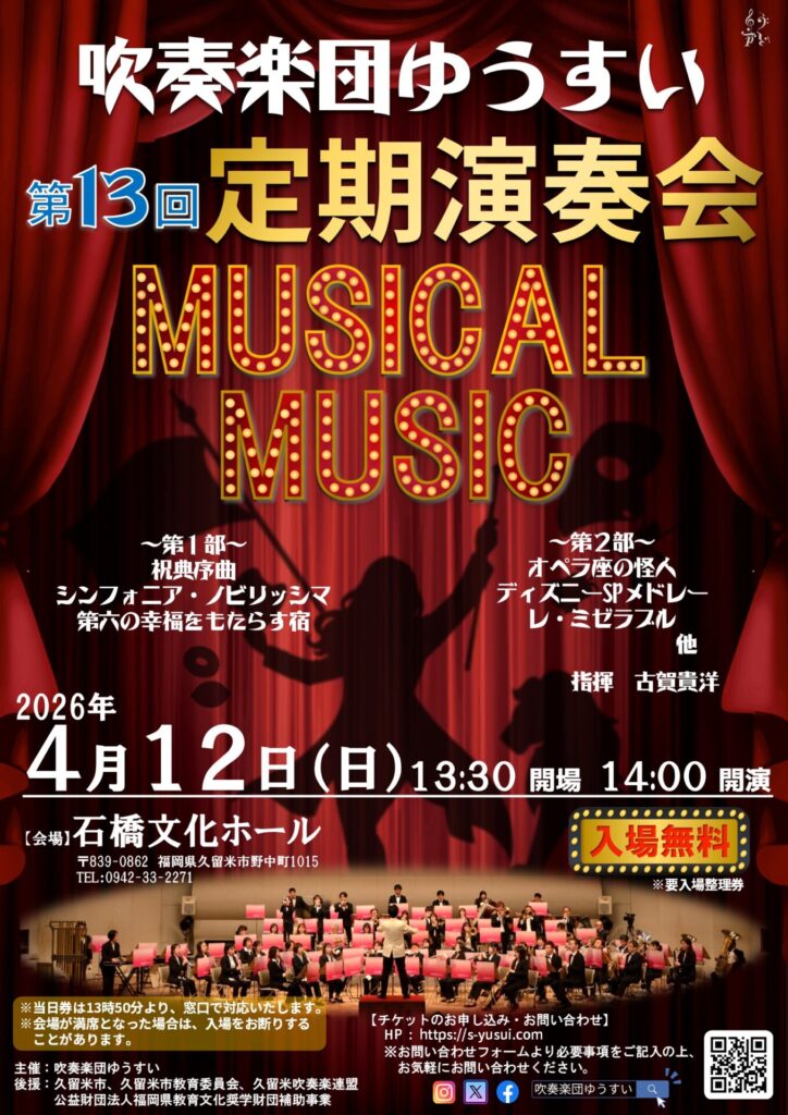 2026年4月12日(日) 吹奏楽団ゆうすい 第13回定期演奏会 開催決定!!